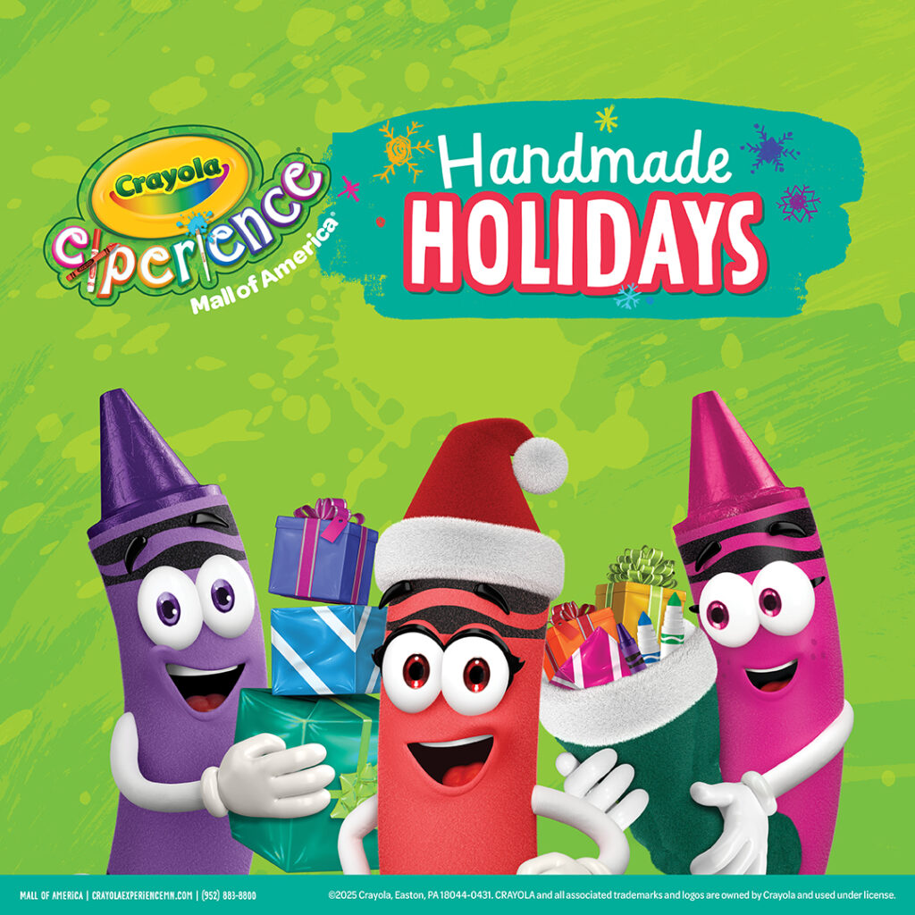 Deck the halls with tons of COLOR and enjoy holiday fun the Crayola way! Complete a seasonal scavenger hunt, pose in holiday photo-ops and make handmade gifts from the heart:
